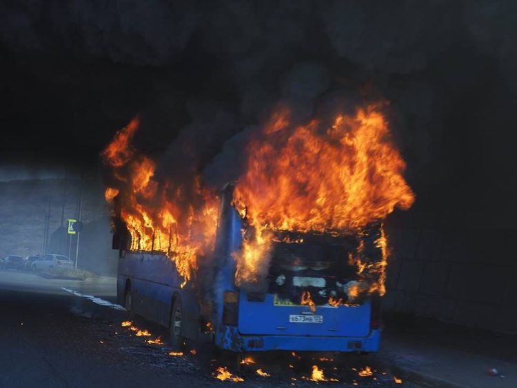 Автобус с людьми загорелся на трассе в Жамбылской области
