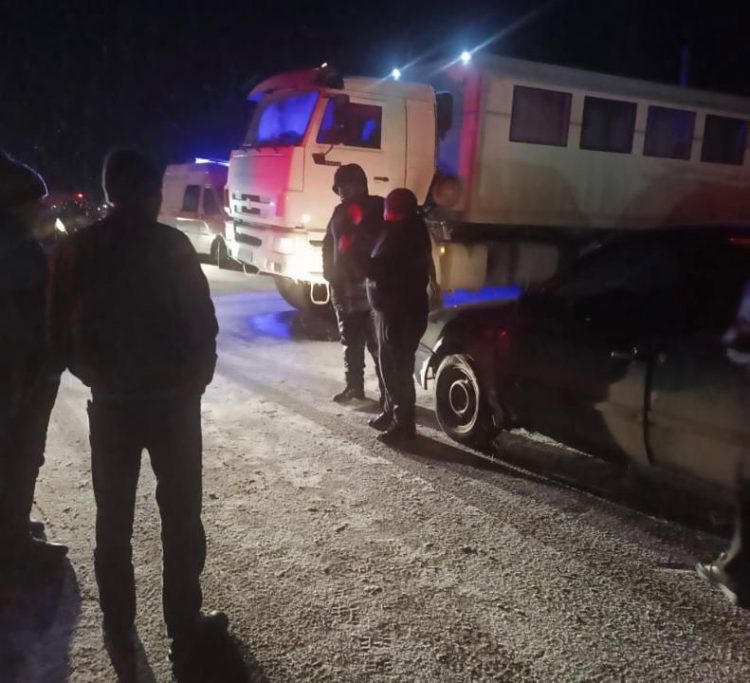 Спасатели, сотрудники местных акиматов, полиция работают в авральном режиме, пытаясь обеспечить всем необходимым водителей и пассажиров.