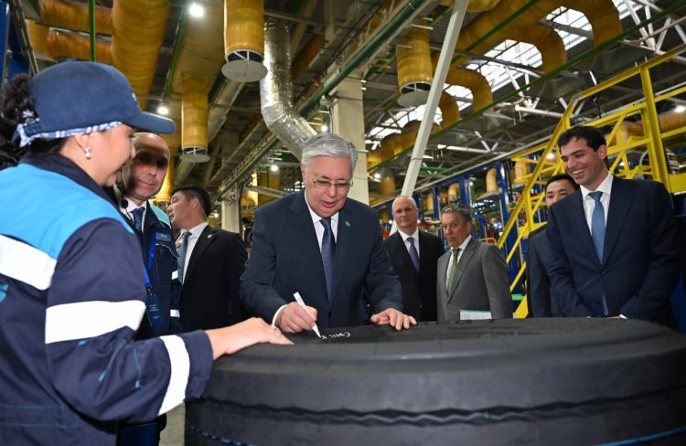 Генеральный директор ЗАО «Татнефть» Наиль Маганов и директор KamaTyresKZ Радий Бурганов рассказали Главе государства о завершении строительно-монтажных работ и полной поставке технологического оборудования. Завод с инвестициями в 234 млрд тенге начал серийное производство продукции, в прошлом месяце он выпустил 30 тыс. шин. Ожидается, что в первый год работы завод произведет 1 млн единиц готовой продукции.