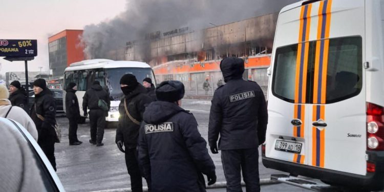 Причина пожара и его площадь пока неизвестны. Полиция оцепила несколько улиц вокруг ТЦ.