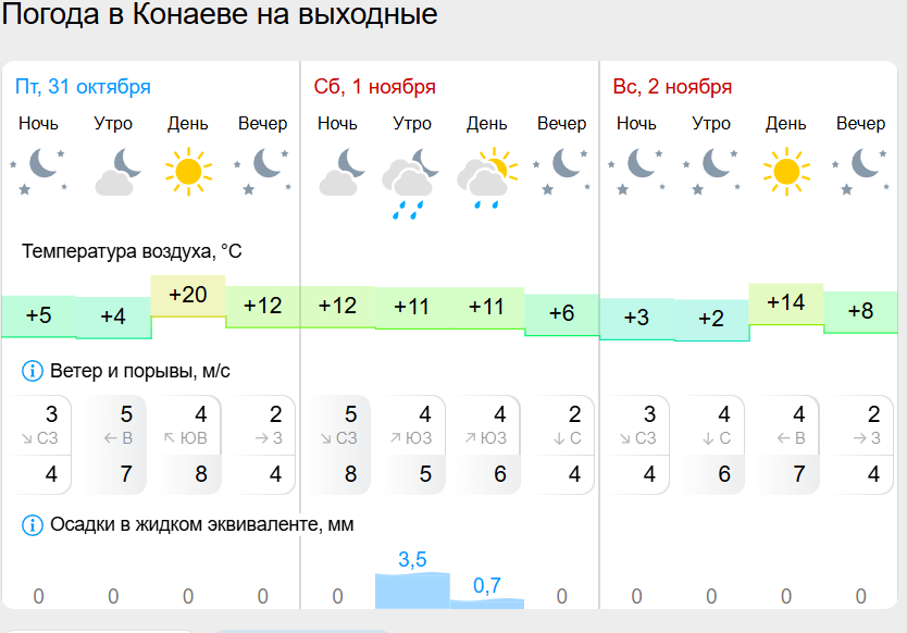 Так в Алматинской области и в Конаеве ожидаются осадки и понижение температуры. 1 ноября, дождь временами сильный. Днем +9+11 тепла, в ночное время +4+6. 2 ноября ожидается погода без осадков — в дневные часы 12+14, а ночью +6+8 тепла.