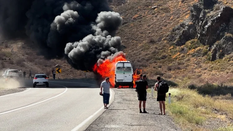 Микроавтобус с туристами из Австралии загорелся на трассе в Алматинской области