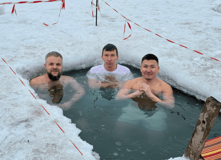 Практику зимнего купания Сабыржан начал 96 дней назад. По его словам, погружение в холодную воду способствует закаливанию организма, повышает иммунитет и придаёт бодрость.
