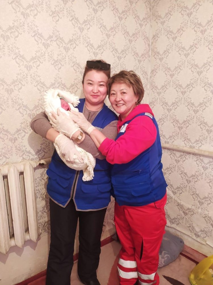 «Они оказали пациентке экстренную медицинскую помощь. Позже заметили, что голова ребенка была видна. Не теряя времени, они сразу перешли к родам», — говорит фельдшер бригады 19/23 Макпал Кунафина.