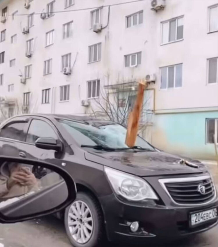 Кроме того, в микрорайоне «Алмагуль» ветер сорвал крышу одного из домов, она упала на припаркованный автомобиль. Информация о пострадавших уточняется.