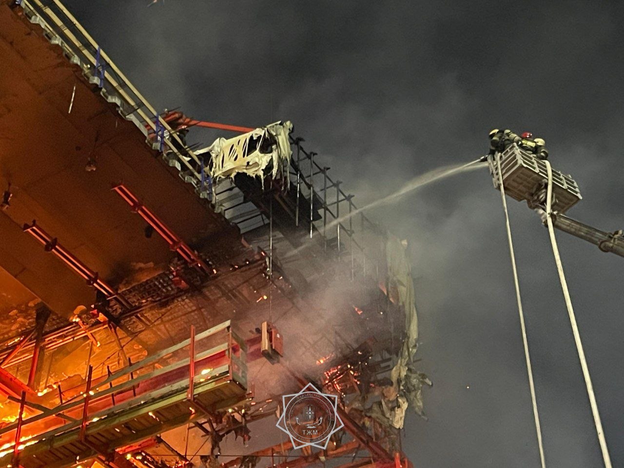 К месту происшествия незамедлительно выдвинулись пожарные расчёты. По прибытии спасатели установили, что горят утеплитель и деревянные элементы опалубки на 4 опоре.