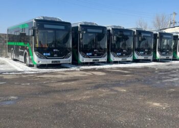 Жаңа автобустардың алғашқы сапарында облыстық жолаушылар көлігі және автомобиль жолдары басқармасының басшысы Ермек Баймұхамбетов пен Қарасай ауданының әкімі Жасұлан Естенов ...