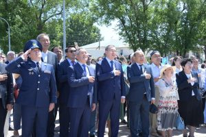 Шара әнұранның шырқалуы мен мемлекеттік тудың салтанатты түрде көтерілуі және облыс әкімі Марат Сұлтанғазиевтің ақжарма тілегімен басталды.