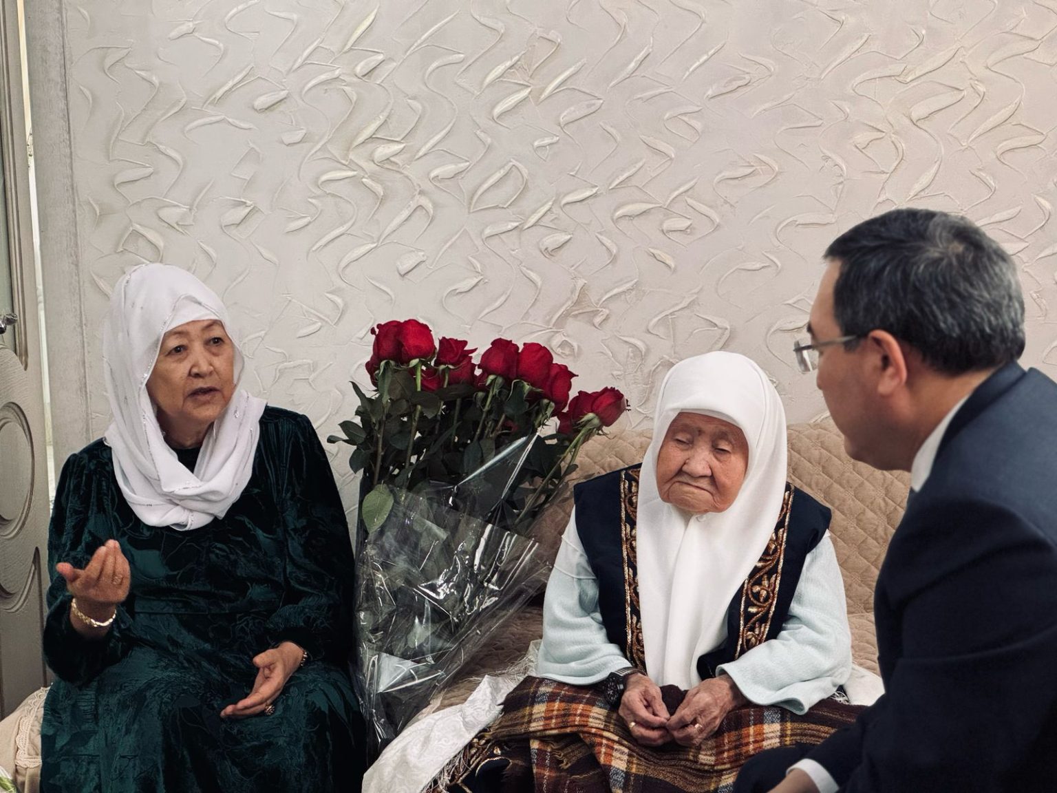 Сонымен қатар, облыс әкімі Қаскелең қаласының тұрғыны, зейнеткер Сәлима Тлеубайқызы Бұлғақбаевамен кездесті. Өңір басшысы ардагер ананың өмірлік тәжірибесін ерекше атап өтіп, оның қазақ қоғамындағы маңызын айрықша бағалады.