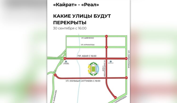 Алматыда «Қайрат» – «Реал» ойынына байланысты көшелер жабылады