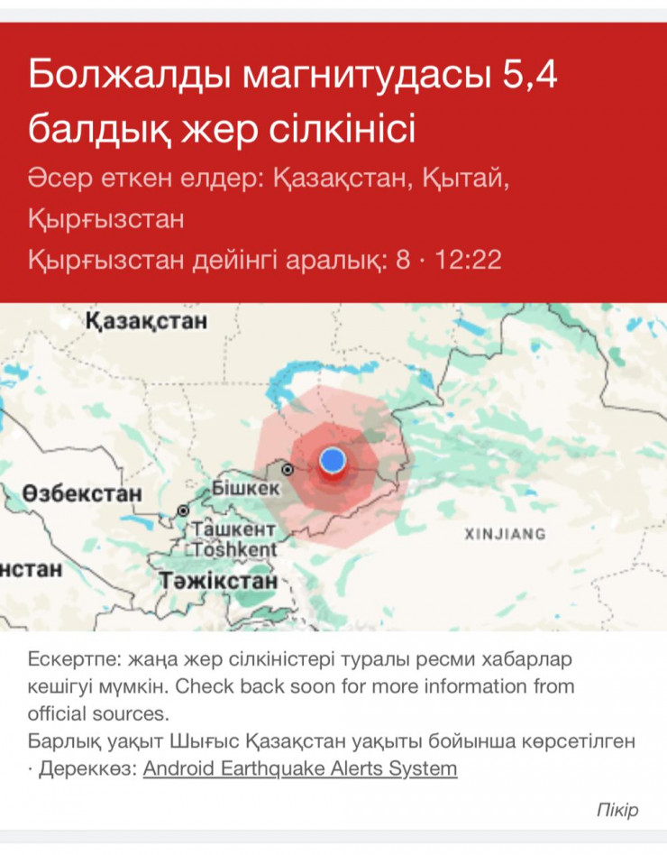 4 наурызда сағат 11:22-де Алматы қаласында жер сілкінісі болды. ҚР ТЖМ сейсмологиялық бақылау және зерттеу Ұлттық ғылыми орталығының сейсмикалық станцияларының желісіндегі ақпарат өңделуде. Эпицентр пен сезгіштігі туралы мәлімет нақтыланып жатыр.