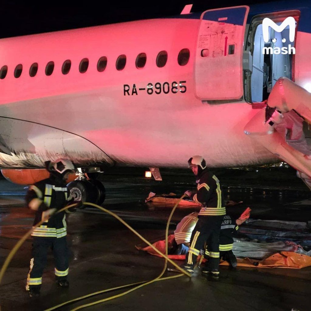 Әуе компаниясының мәліметінше, Superjet ауа-райының қолайсыздығынан қатты қонып кейін өртке оранған.