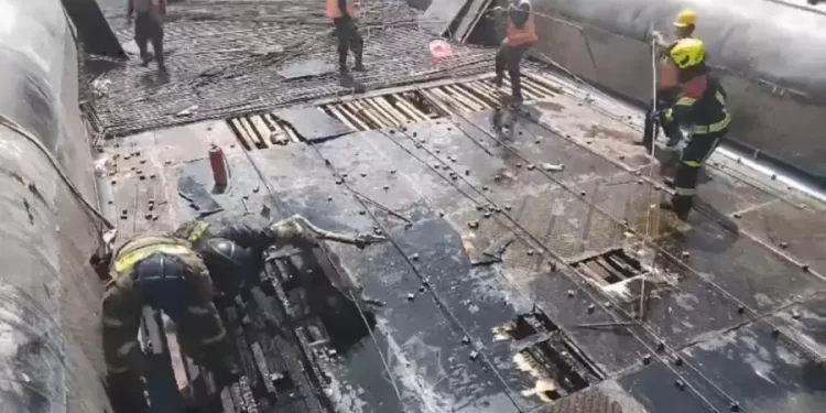 Бүгін Алматы ауданында «Нұрлы Жол» темір жол вокзалының маңында салынып жатқан ЖРК бағаналарының аралықтары арасындағы қалыптардың жанып кетті.