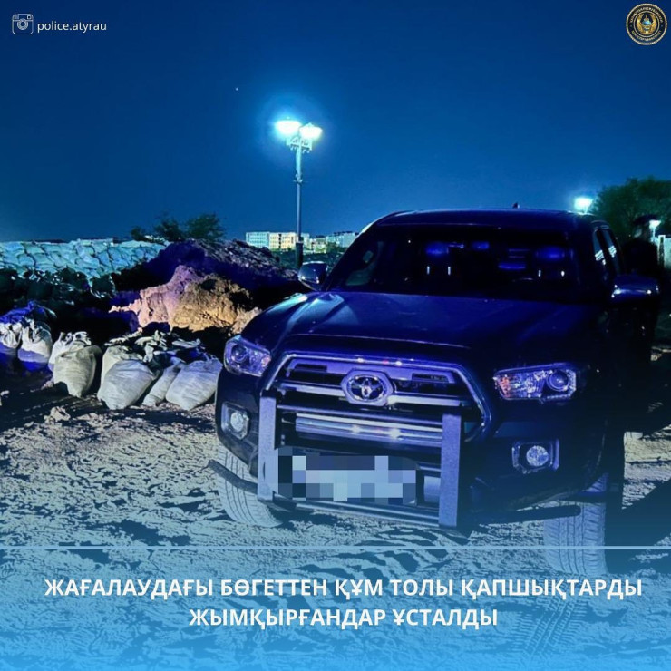 Полицейлердің мәліметінше, 18 сәуірде сағат 21:00 шамасында Атыраудағы Жайықтың жағасында дайындалған су бөгеттерінен құм салынған қап ұрлағандар анықталып, ұсталды.