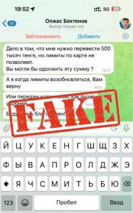 Telegram және WhatsApp мессенджерлерінде ҚР премьер-министрі мен Үкімет мүшелерінің жалған парақшалары ашылды. Осылайша, алаяқтар банктің шектеу қоюына байланысты қаржылай көмек сұрап, хабарлама жіберіп жатыр. Олар фишинг сілтемелерін пайдаланады.