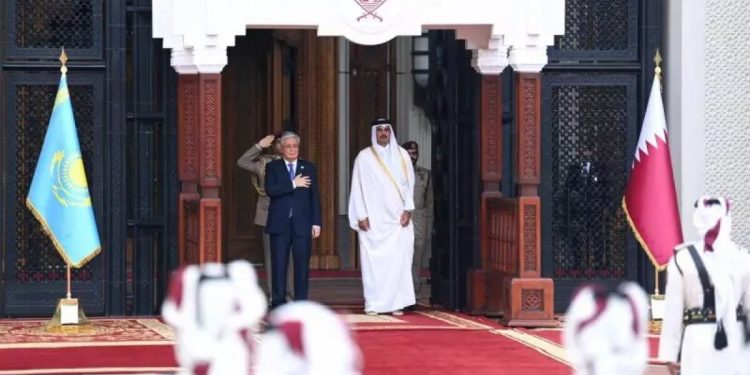 Құрмет қарауылының бастығы екі ел басшыларына рапорт берді. Қазақстан мен Қатардың әнұрандары шырқалғаннан кейін Қасым-Жомарт Тоқаев пен шейх Тәмим бен Хамад Әл Тәни бір-біріне ресми делегация мүшелерін таныстырды.