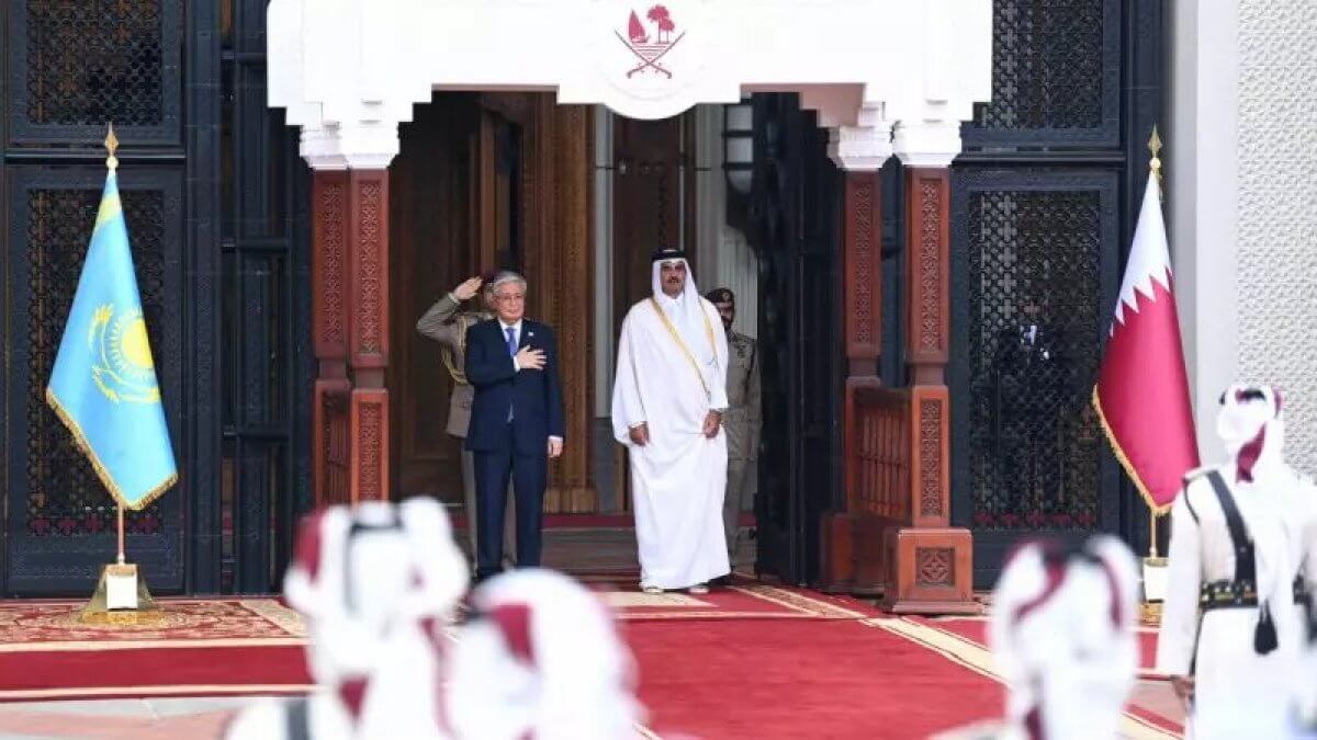 Құрмет қарауылының бастығы екі ел басшыларына рапорт берді. Қазақстан мен Қатардың әнұрандары шырқалғаннан кейін Қасым-Жомарт Тоқаев пен шейх Тәмим бен Хамад Әл Тәни бір-біріне ресми делегация мүшелерін таныстырды.