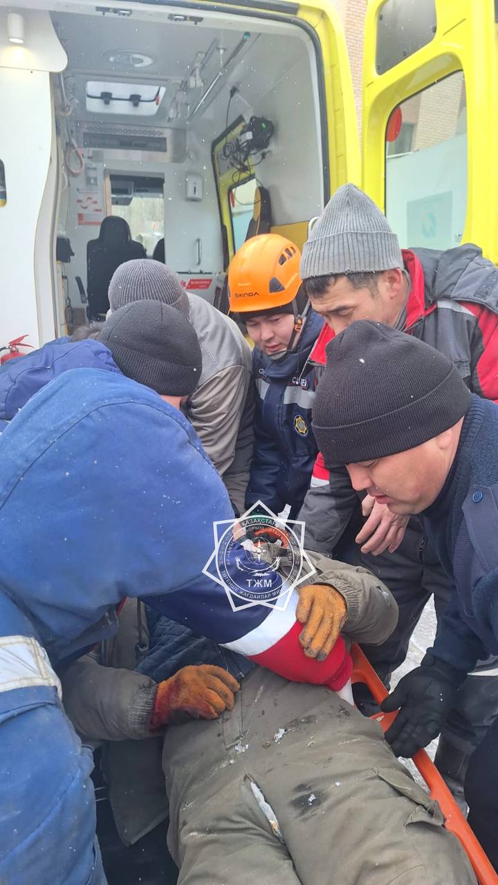 С помощью жестких носилок спасатели вынесли пострадавшего из строящегося здания и передали сотрудникам скорой помощи.