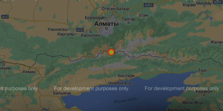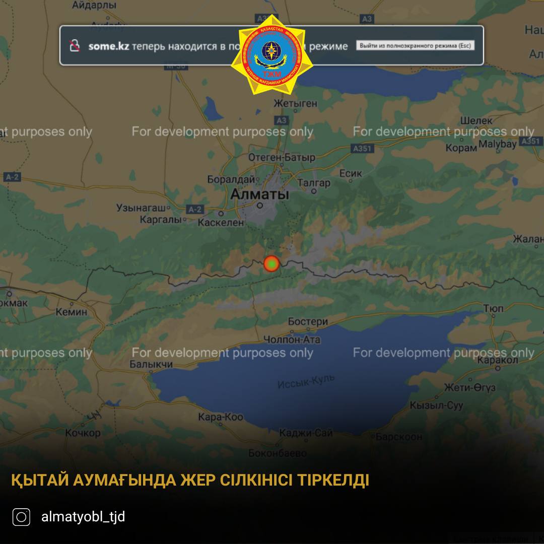 Эпицентр землетрясения расположен в 255 км на юго-восток от г. Алматы на территории Китая-афтершок.