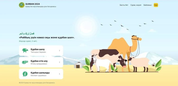 Желающие воспользоваться услугой могут через сайт выбрать жертвенное животное и перевести необходимые средства через Kaspi QR. Овец и коз может принести в жертву один человек, а крупный рогатый скот и верблюдов – коллектив до семи человек.