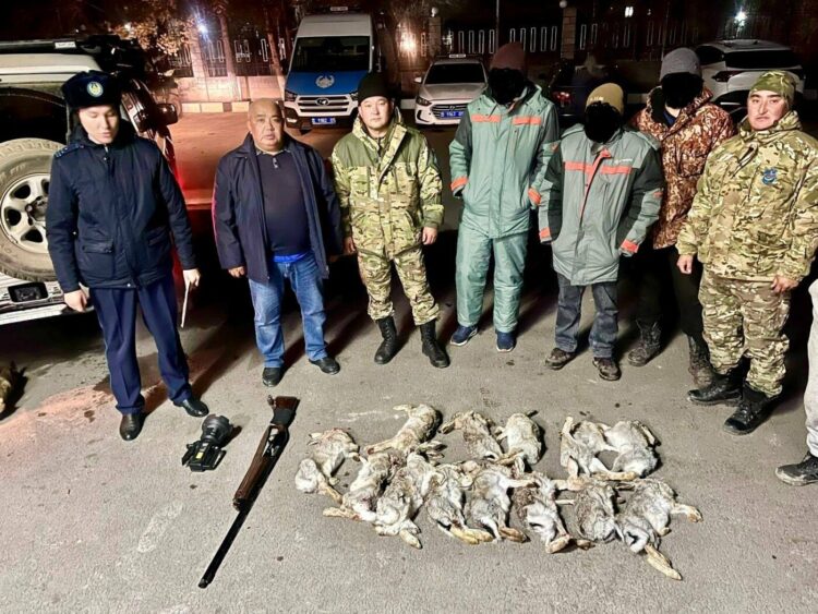 Двое жителей Алматы и области охотились незаконно. При осмотре их Mitsubishi Pajero сотрудники резервата обнаружили ружьё 12-го калибра и 13 отстрелянных зайцев. В отношении задержанных завели уголовное дело, им грозит до семи лет заключения.